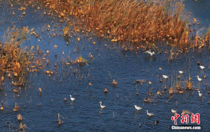 宿迁市泗洪县境内的洪泽湖湿地,植被色彩丰富,景致宛若油画。中新社记者 泱波 摄